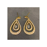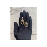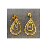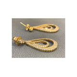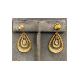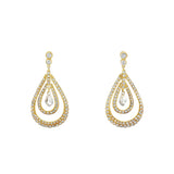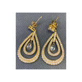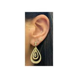A pair of diamond earrings featuring a center danlging briolette diamond. Set with round cut diamonds.