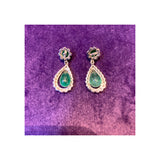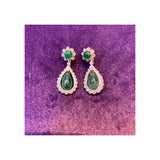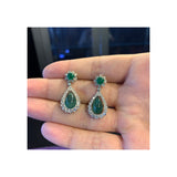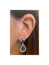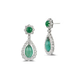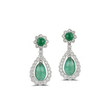 14 karat white gold earrings with 2 emerald drops approximately 10 carat, 2 cabochon emeralds approximately 1.60 carat, 54 round diamonds approximately 1.74 carat