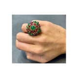 Cartier Mughal Style Ruby & Emerald Cocktail Dome Ring.