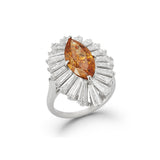 Fancy Deep Orange Yellow Marquise & Baguette Cut Diamond Ring