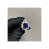 Certified Natural Unheated Oval Cut Sapphire and Diamond Ring