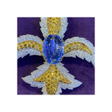 David Webb Sapphire & Diamond Fleur-De-Lis Brooch