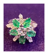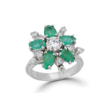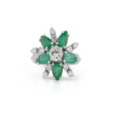 Diamond & Emerald Flower Cocktail Ring