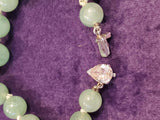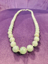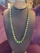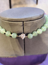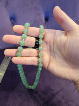This necklace is set with translucent round green beads including a pear shape diamond clasp.