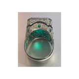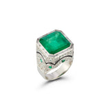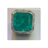 1 emerald cut emerald approximately 12.7 cts with baguette & round cut diamonds, emeralds & black enamel set in platinum