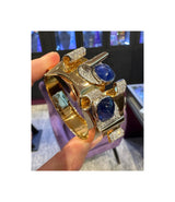 Natural Burmese Sapphire French Double Clip Retro Bangle Bracelet