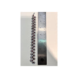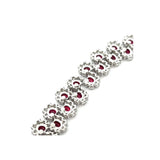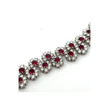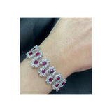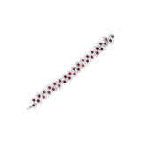 A white gold bracelet with an undulating line of 102 round cut diamonds and 34 oval rubies.
