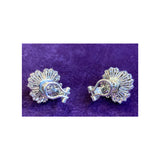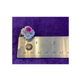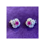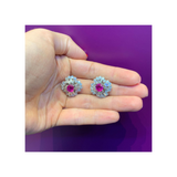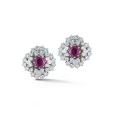Ruby & Diamond Clip On Earrings, round earrings with cluster of 24 baguettes approximately 1.62 cts and 40 round cut diamonds approximately 3.31 cts and 2 center ruby approximately 2.40 cts 18K White Gold