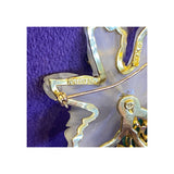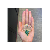 Carved rock crystal flower motif with 7 round cut diamonds forming a flower in the center & 14 marquise cut emeralds.